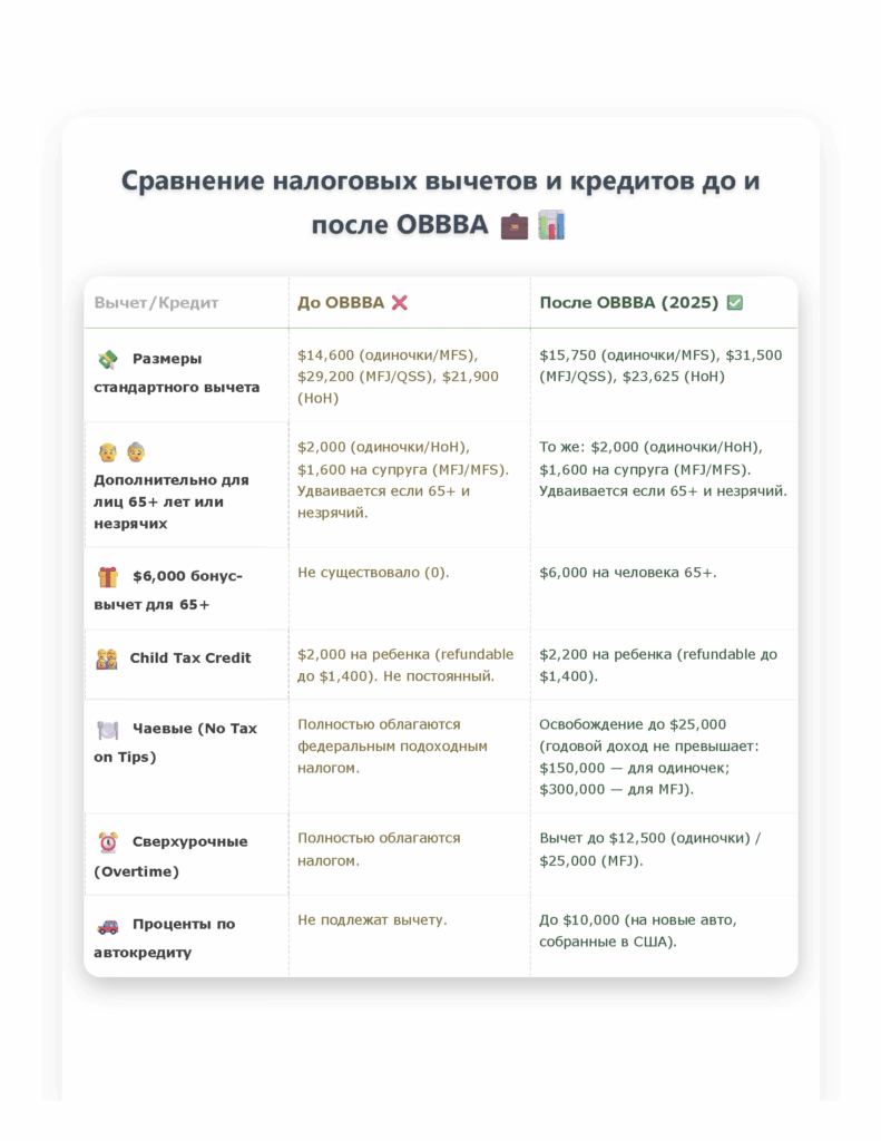 • Основные изменения в налоговой системе США после OBBBA (One Big Beautiful Bill Act) и 2025 Tax Act